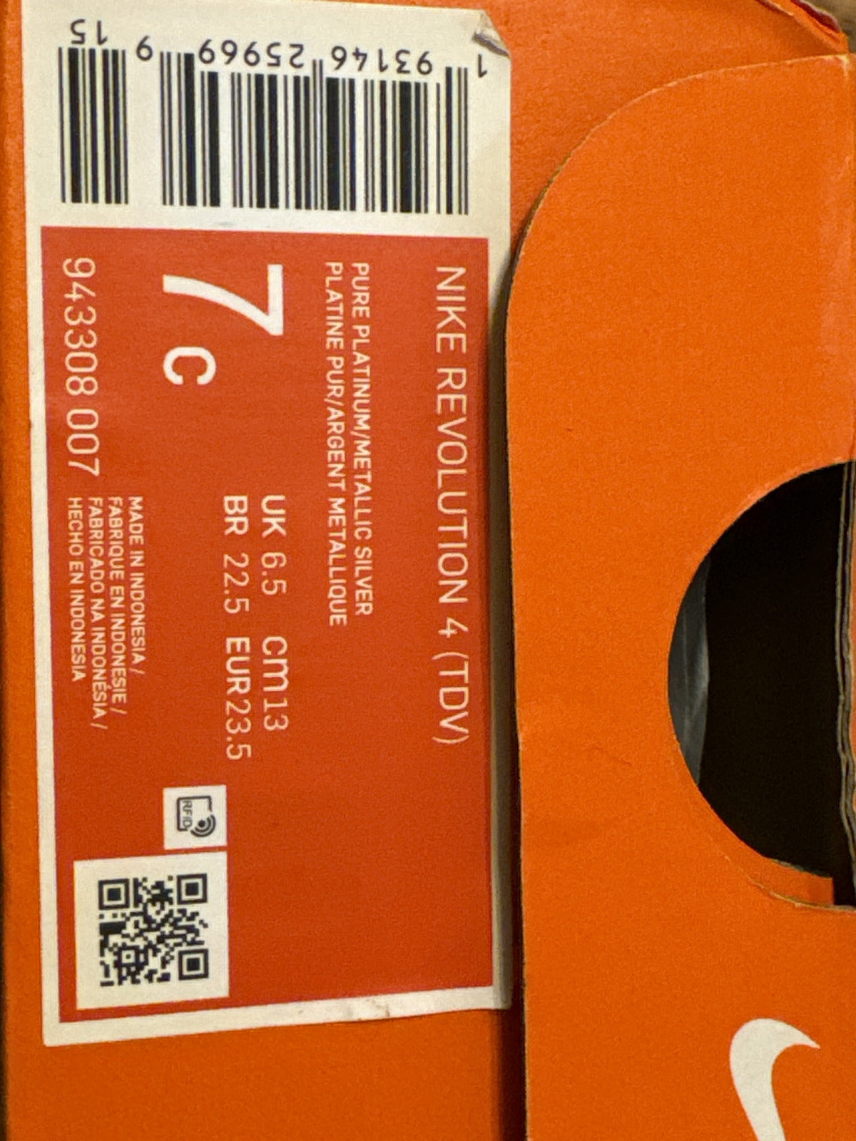 Nike Revolution 4 (Tdv) US7C PLATINUM METALLIC SILVER