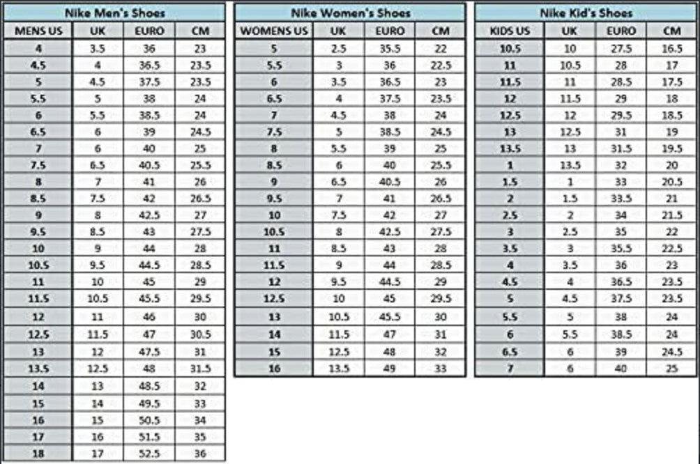 Disclaimer Please consult and follow Nike size charts and sizing guides listed on each shoe's item page description before making your purchase.